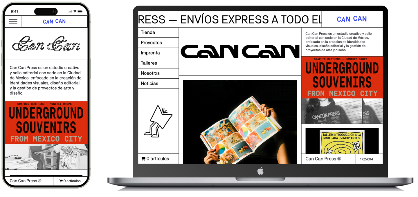 [I developed the CanCanPress website, integrating an e-commerce platform and a customized section for quoting services. The site includes animated elements and programming tailored to the design."]